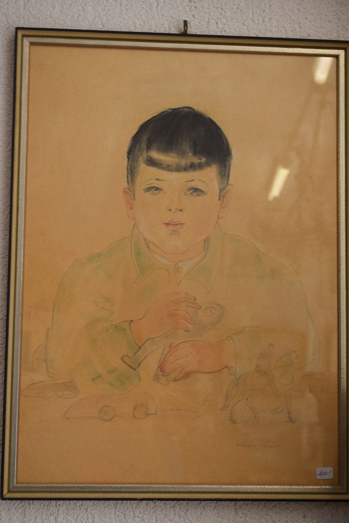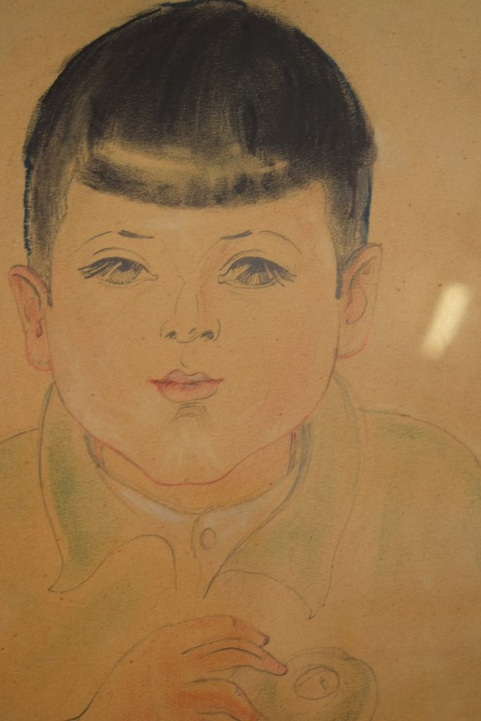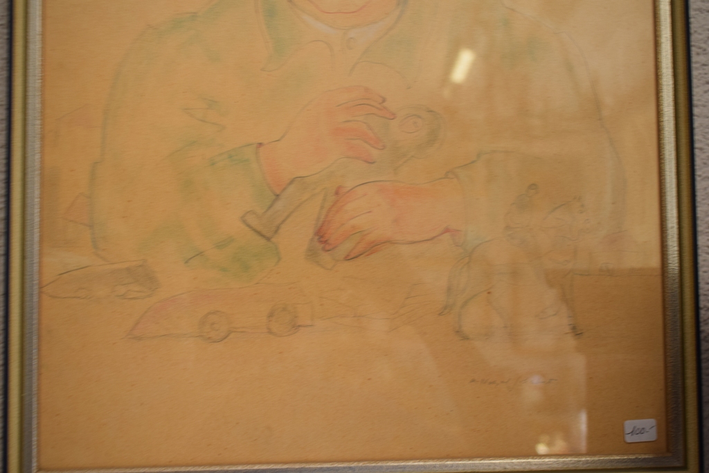 Dessin d’un enfant sur carton.- encre de 46 cm X 33,5 cm (cote de la toile)