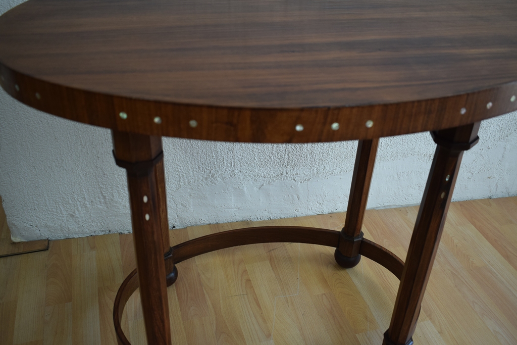 Petit guéridon ovale Art Déco en palissandre et incrustation de nacre